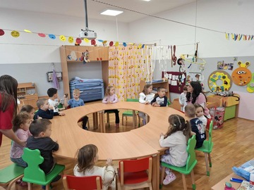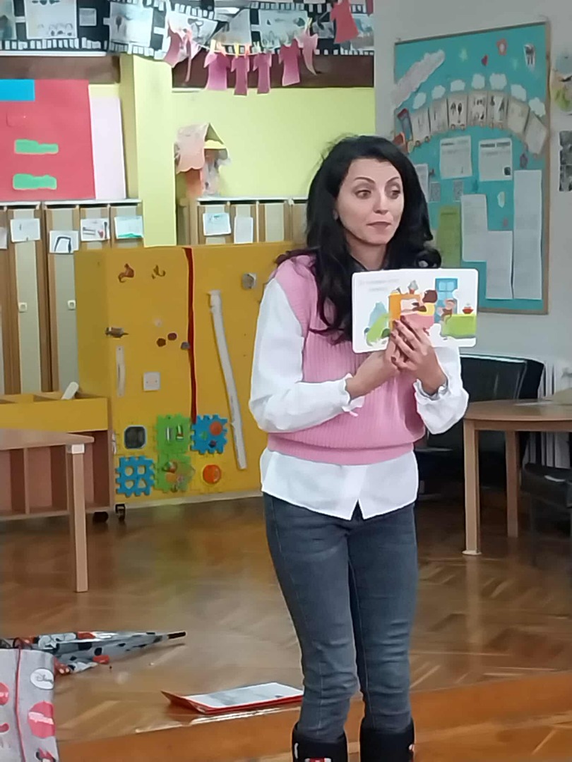 У уторак, 7. октобра, дружиле су се малишанима из ПУ ,,8. септембар“. Посетиле су објекте: ,,Лептирић“, ,,Пчелица“ и ,,Колибри“. Библиотекарка Драгана Пешаковић, испричала је причу Жућа иде у вртић- Ерика Хила. Након тога су играли уз песму Прсте има рука свака. Дружење су наставали рецитовањем, игром и смехом.